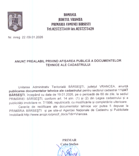Primăria Urechesti anunță finalizarea proiectului ,,Dotarea cu mobilier, materiale didactice și echipamente digitale a unitatilor de invatamânt preuniversitar și a unitatilor conexe, Comuna Urechești, Judetul Vrancea”