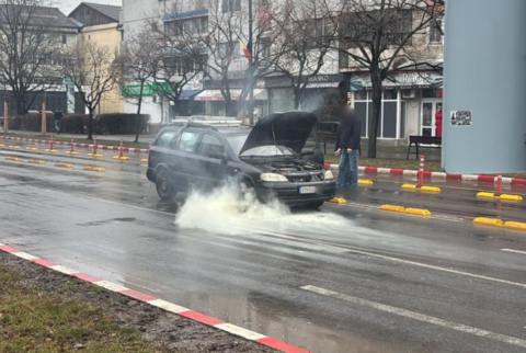 Foto. O mașină a luat foc în zona „Doi stejari” din Focșani