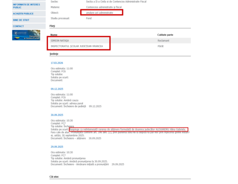 Dosarul în care Natașa Simion, fosta directoare a Colegiului Național… Citește Livia Marcu, șefa IȘJ Vrancea, făcea (poate mai face și acum) pregătire cu fiica judecătoarei care are pe rol dosarul ISJ vs. ex-directoarea de la Pedagogic, Natașa Simion, iar judecătoarea Virginia Zidărescu a refuzat să admită cererea de abținere depusă în speță.