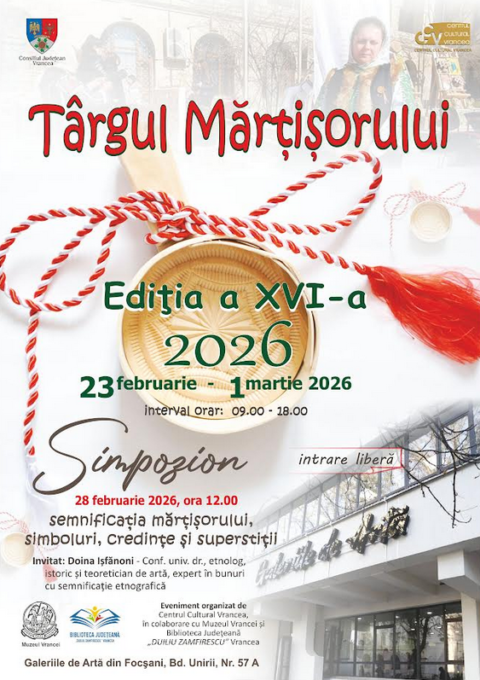 Centrul Cultural Vrancea organizează în perioada 23 februarie – 1… Citește Târgul Mărţișorului, ediția a XVI-a, la Galeriile de Artă Focșani