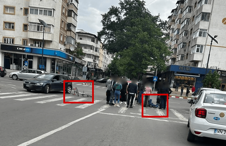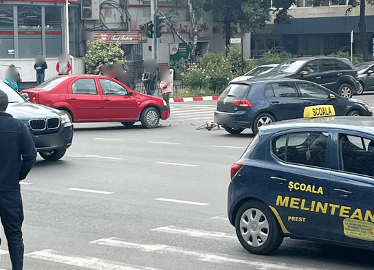 Biciclistul a suferit răni la cap. Revenim cu detalii.