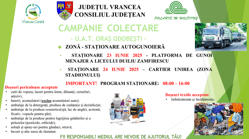 Posted in Eveniment ADI „Vrancea Curată” și Polaris M. Holding derulează o campanie gratuită de colectare în orașul Odobești. Fii responsabil. Mediul are nevoie de ajutorul tău. EditiedeVrancea 04/06/2025 Leave a Comment on ADI „Vrancea Curată” și Polaris M. Holding derulează o campanie gratuită de colectare în orașul Odobești. Fii responsabil. Mediul are nevoie de ajutorul tău. 0 492 Ediție de Vrancea Online Știri din Vrancea, actualizate constant. Vizitează pagina PROMO