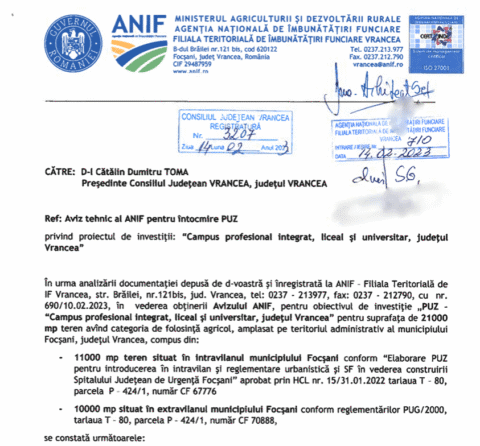 Finanțarea proiectului privind campusul universitar de la Focșani, proiect inițiat… Citește Exclusiv! Avizul ANIF pentru care Misăilă – Habarnilă spune că a sunat pe 20 august exista încă din anul 2023. Avem dovada! Joac-o pe asta, primare!