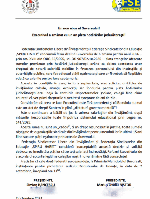Copiii noștri, ai romilor, ai românilor și ai tuturor cetățenilor acestei țări NU trebuie transformați în subiecți ai unor experimente ideologice!