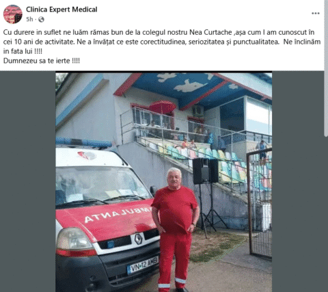 Anunțul a fost făcut de Clinica Expert Medical din Focșani,… Citește A murit unul dintre cei mai experimentați șoferi de Ambulanță din Vrancea, „nea Curtache”. Dumnezeu să-l odihnească în pace!