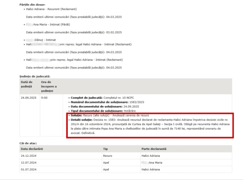 Soția lui Halici are de plătit 1500 de euro după ce a pierdut definitiv procesul cu o angajată a Primăriei Păulești