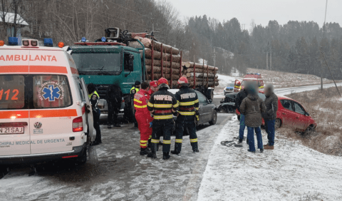 Acum: Trei autoturisme și un camion implicate într-un accident la Mărășești. Trafic blocat pe sensul Bacău – Focșani.