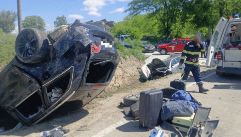 Astăzi. Au avut zile după ce s-au răsturnat cu un Audi, la Corbița. Șapte oameni au fost răniți în accident.