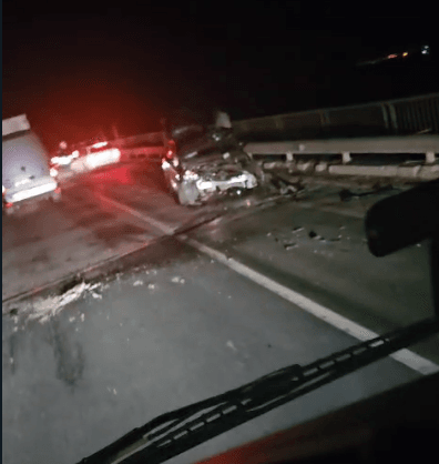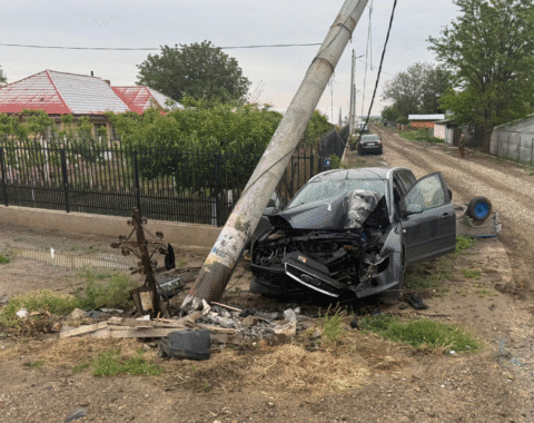Foto: Un tânâr de 26 de ani a intrat într-un stâlp pe DN 2, la Limpeziș, între Buzău și Urziceni, fix în locul în care a murit un alt șofer, cu câțiva ani în urmă.