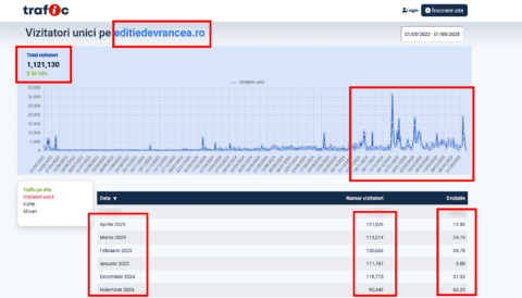 Medie lunară de 120.000 de vizitatori unici pentru Ediție de Vrancea, în ultimele 6 luni. Vă mulțumim!