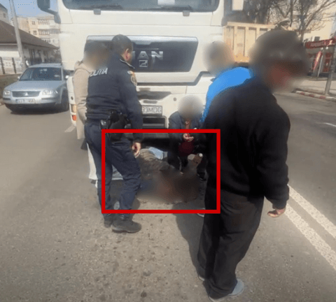 Fotografii în premieră. Bărbatul lovit de camion ieri la Adjud era băut și traversa neregulamentar. A avut zile!