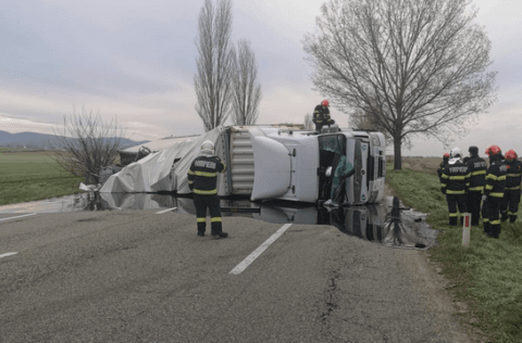 Situația pe DN 2 – E 85, bulversată de un accident mai rar întâlnit pe șosele.