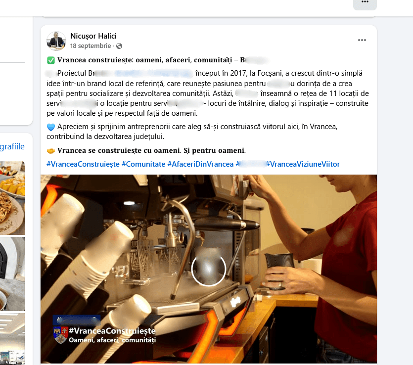 În goana lor după imagine și după atragerea de simpatizanți, fie că vorbim de persoane fizice sau de persoane juridice, Nicușor Halici (președintele CJ Vrancea) și Valentin Misăilă (primarul Focșaniului), fac reclamă unor firme private în condiții care ar trebui analizate de instituțiile abilitate (Curtea de Conturi, Agenția Națională de Integritate etc.)