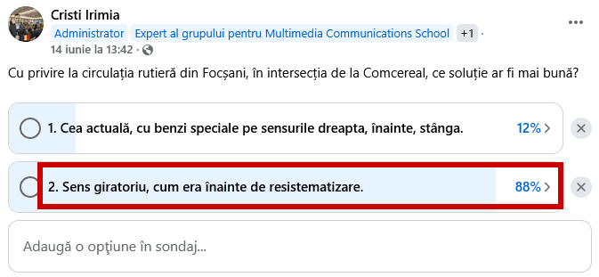 Problema este că în condițiile în care Misăilă este primar, acest lucru este aproape imposibil. Lui Misăilă îi lipsește viziunea și, cel mai important, nu are specialiști care să-l sfătuiască. Dacă era un primar cu viziune, ar fi făcut un sondaj cu privire la dorința șoferilor, ÎNAINTE de resistematizare. Mai mult, nici măcar de sondaj nu era nevoie pentru că este arhicunoscut faptul că un sens giratoriu asigură un trafic mai fluent decât o intersecție semaforizată. (Cristi IRIMIA)