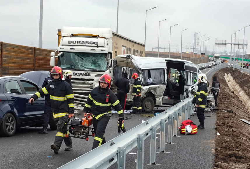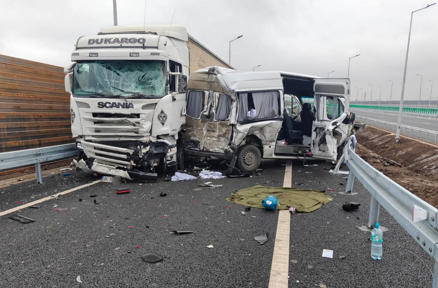 Un microbuz de transport persoane a intrat cu viteză pe contrasens producând primul accident de pe A7 Focșani – Adjud, chiar în ziua în care a fost deschis traficul pe acest tronson de mare viteză.