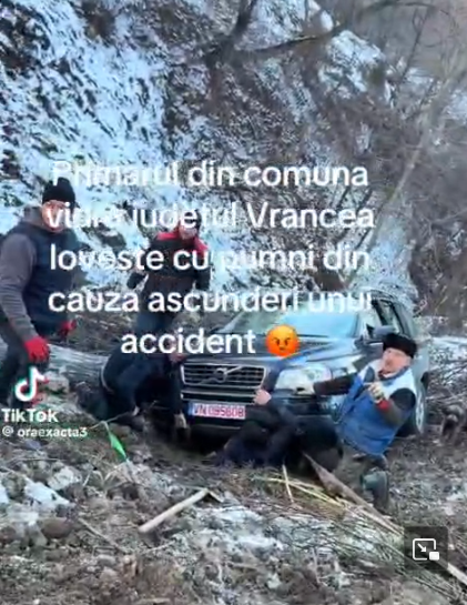 Silviu Pintilie, primarul social-democrat al comunei Vidra, este acuzat, într-o filmare pe Tik Tok, că a lovit un bărbat care filma urmările unui accident rutier. Bărbatul îi spune primarului că nu a luat măsuri pentru cetățenii care au reclamat că nu s-a preocupat de starea drumului din zonă, moment în care Silviu Pintilie se îndreaptă către cel care îl filmează și îl agresează fizic. La incident au participat mai multe persoane. (Cristi IRIMIA)